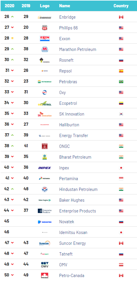 OIL & GAS 50 2020 RANKING