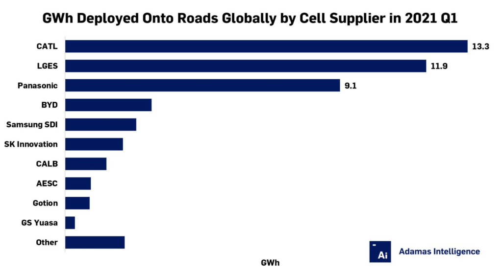 “Through the first three months of 2021, CATL deployed 10.6 GWh of passenger EV battery capacity onto roads in newly sold passenger EVs in China, more than the next 32 cell suppliers combined,” the report reads.