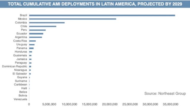 Latin America is a massive potential market for the globalisation of smart energy. Projections show the region accounts for over 85 million smart meter deployments by 2029. Countries like Brazil, Mexico, Argentina, Colombia, Chile, Ecuador, Peru are leading the charge and are well on their way to deploying millions of smart meters by that point.
