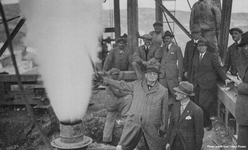 Construction of Larderello geothermal power plant in the beginning of the 20th century. Credit: Enel Green Power historical archive