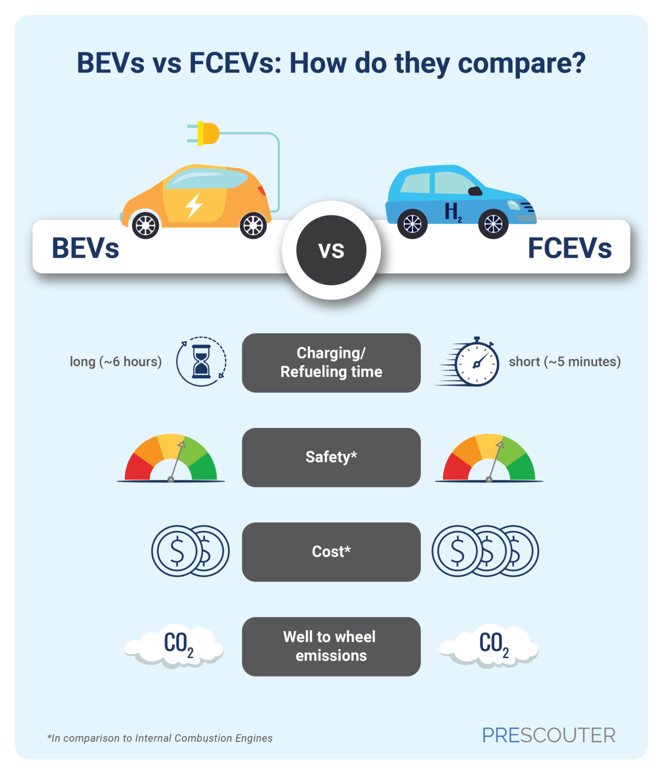 According to a recent PreScouter Intelligence Brief, in the absence of an infrastructure to enable FCEVs, BEVs remain the more appealing option today. However, this could change within the next five to 10 years as investments in hydrogen production and infrastructure increase, potentially pushing FCEVs to outperform BEVs in some segments and become the more sustainable alternative.
