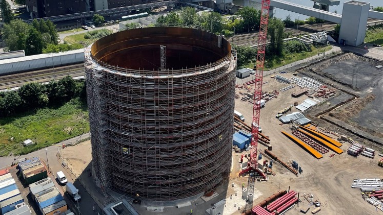 At 45 metres high, with a diameter of 43 metres and a capacity of 56 million litres, Germany's largest heat accumulator will store district heating water at a temperature of 98 degrees Celsius and therefore play a significant role in driving forward the heat and energy transition in Berlin and contribute to energy security in Germany. Together with the power-to-heat plant – which is the largest in Europe – adjacent to the power plant site, the heat storage will help to increase the use of surplus renewable energy from the grid.