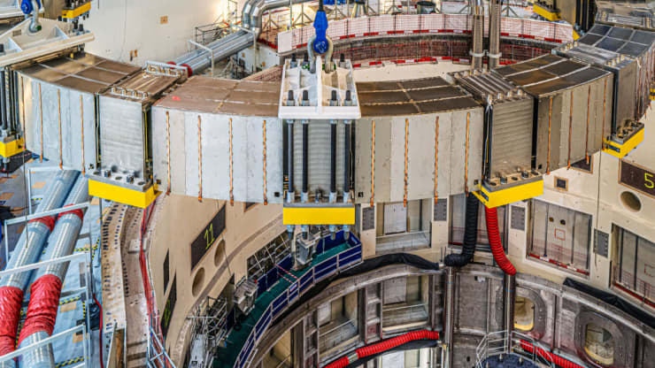 Installation of one of the giant 300-tonne magnets that will be used to confine the fusion reaction during the construction of the International Thermonuclear Experimental Reactor (ITER) on the Cadarache site on September 15, 2021. Jean-marie Hosatte | Gamma-rapho | Getty Images