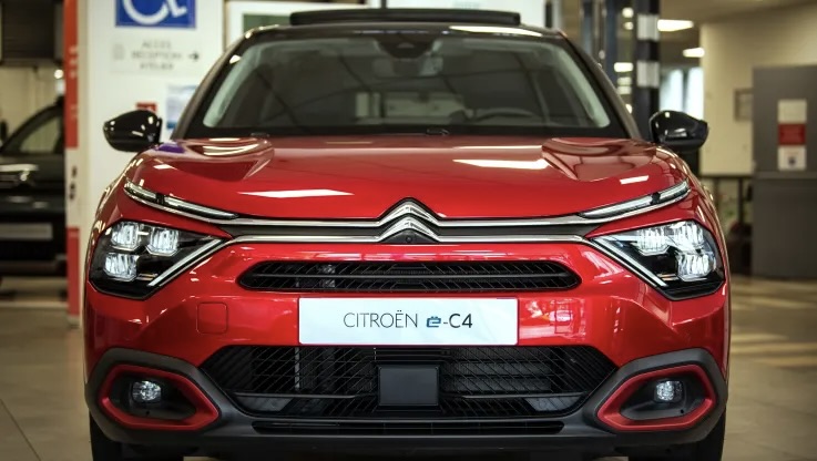 This image, from July 2021, shows a Citroen e-C4 electric vehicle on display at a showroom in Paris, France. Citroen is a brand of Stellantis, one of the world’s biggest automakers. Benjamin Girette | Bloomberg | Getty Images