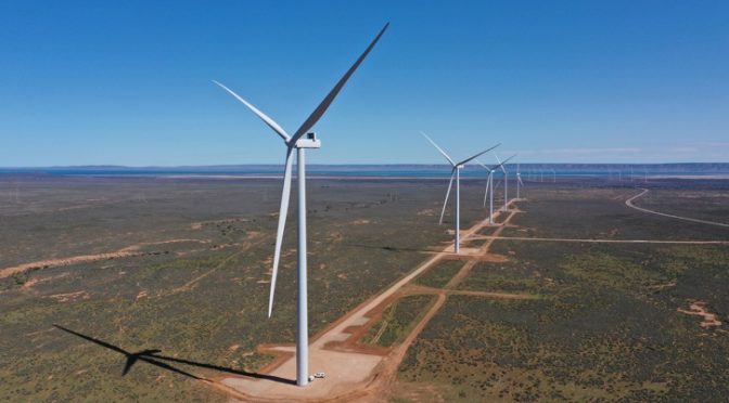 Comprising 50 wind turbines and 250,000 solar panels, the complex is the largest wind-solar hybrid farm in the southern hemisphere. The plant will prevent the emission of 400,000 tonnes of CO2 per year into the atmosphere and will be able to generate enough clean energy to supply the equivalent demand of 180,000 Australian households.