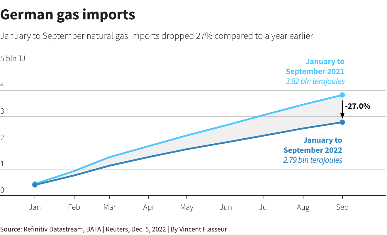 That's the cumulative scale of the bailouts and schemes the Berlin government has launched to prop up the country's energy system since prices rocketed and it lost access to gas from main supplier Russia, according to Reuters calculations.