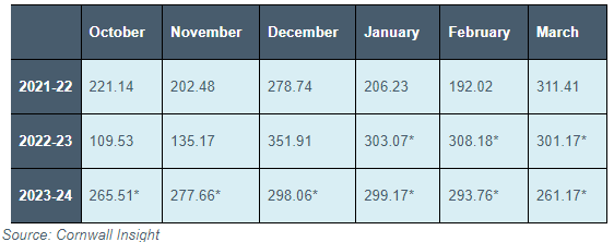 * Asterisks indicate the data is from Cornwall Insight’s forecasts and not actual day-ahead data
