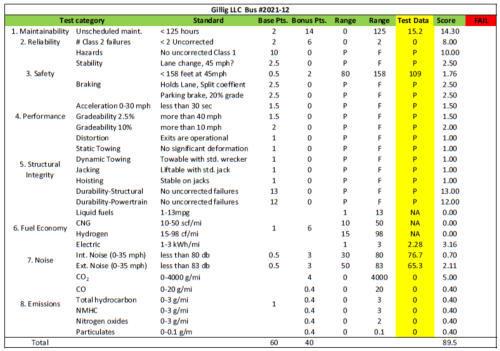 With an overall score of 89.5 out of 100, GILLIG’s Battery Electric Bus far exceeds the Altoona minimum standards and passed all pass/fail performance tests, qualifying for purchase with federal funding (as all GILLIG buses are).