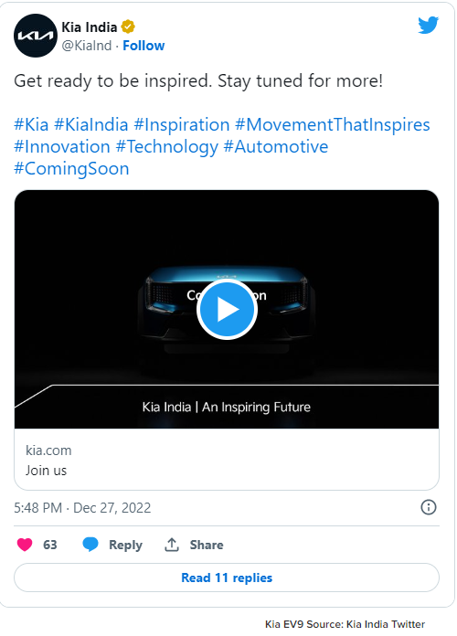 In August, Kia said the EV9 was entering the final stages of testing as it prepares for production in 2023, releasing images of it wrapped in camo. The automaker is ready to take the sheets off as Kia India posted a teaser video showing the vehicle’s unique shape and edges on its Twitter.