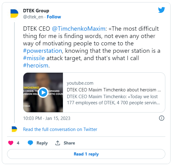 This latest attack saw missiles hit two DTEK TPPs, damaging the equipment and further disrupting power supply for the battered country, which has been experiencing rolling power outages due to the war with Russia.