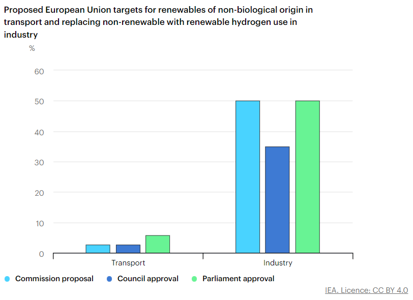 Second, policy uncertainty over industry and transport mandates makes it challenging to assess renewable hydrogen demand potential and plan new electrolyser investments. The European Union is considering three different proposals for binding targets for renewables in existing hydrogen use in industry (ranging from 35% to 50%) and renewables of non-biological origin in transport (2.6% to 5.7%), but a final decision has yet to be taken. Whether developers will be able to secure off-takers and bring projects to financial close also poses a risk to the forecast.