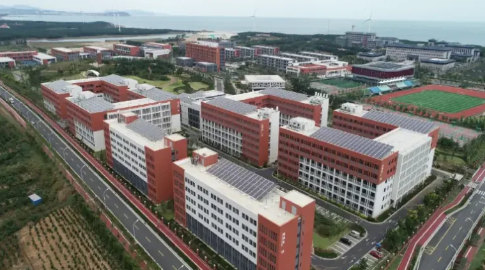 6,000 m2 of vacuum tube collectors installed on the roofs of the Weihai Vocational School provide space heating for the classroom buildings. Photo: Sunrain Group