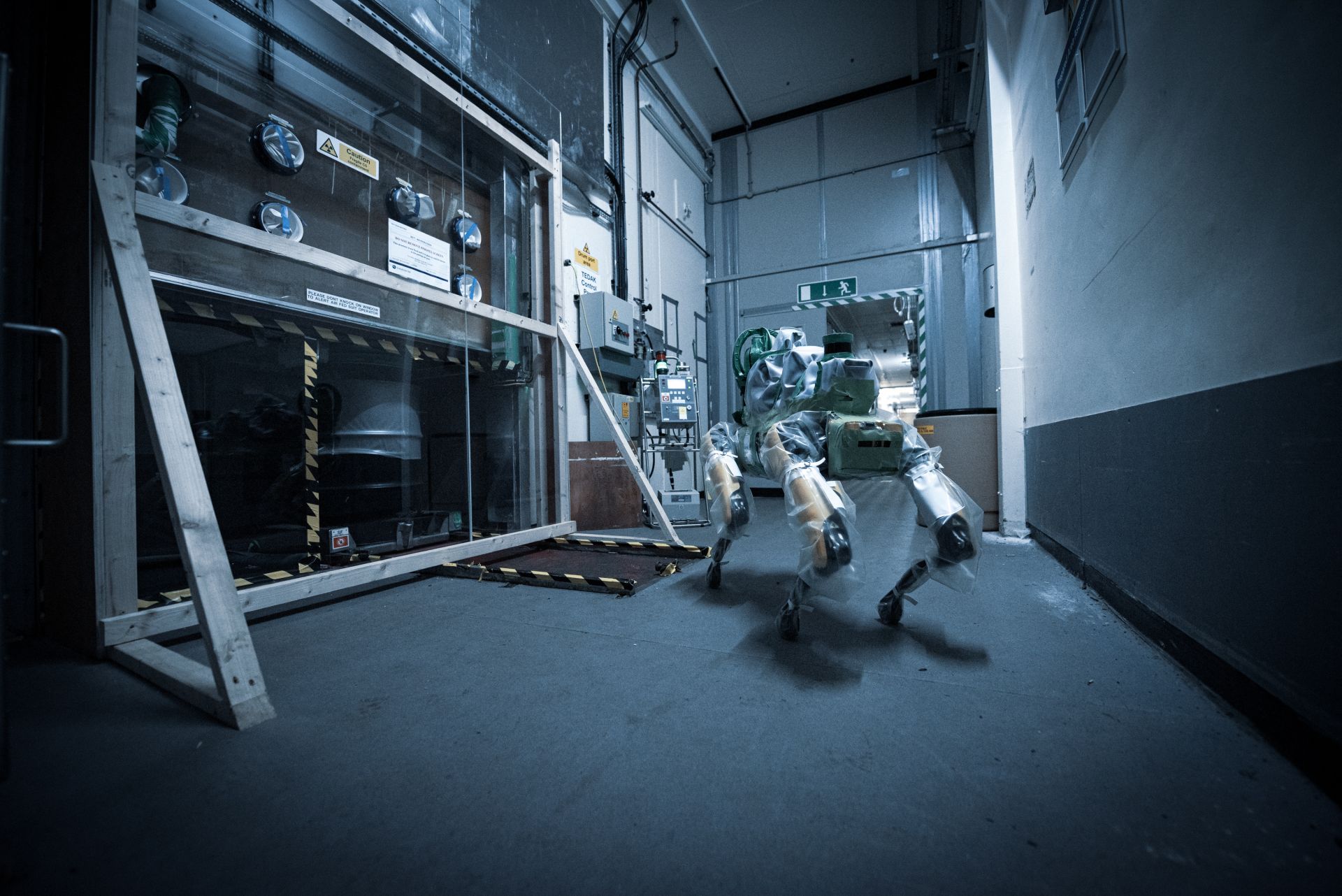 Fig. 3. Spot the robotic dog collecting information by laser scanning and gamma radiation imaging. (Photo: Sellafield)