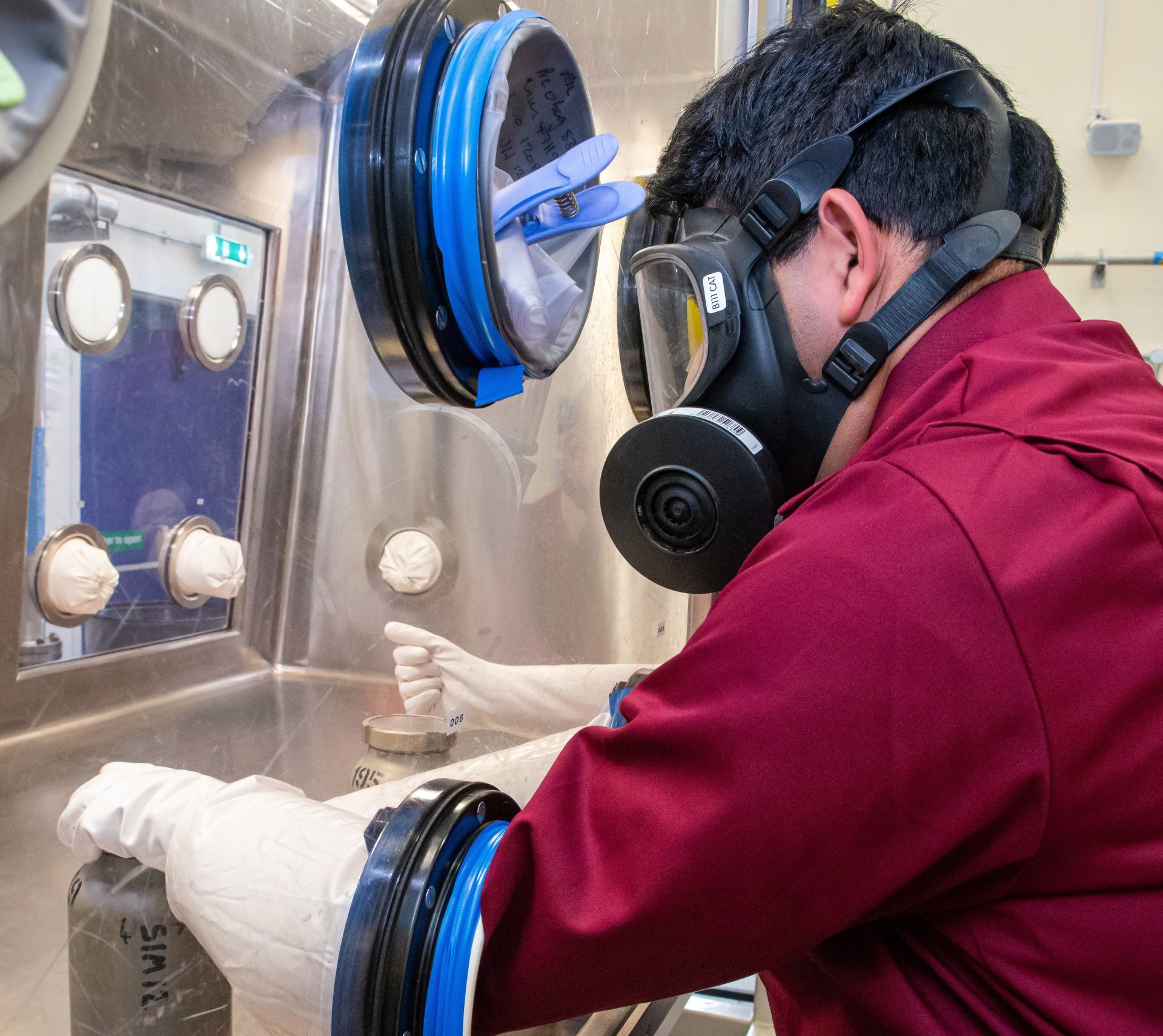 Fig. 5. A worker undergoing training at the U.K.’s dedicated Glove Box Training Facility at Sellafield. (Photo: Sellafield)