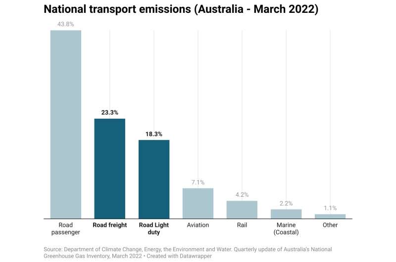 Of these emissions, freight trucks are responsible for 23%, and light duty road vehicles—which includes utes— contribute 18%.