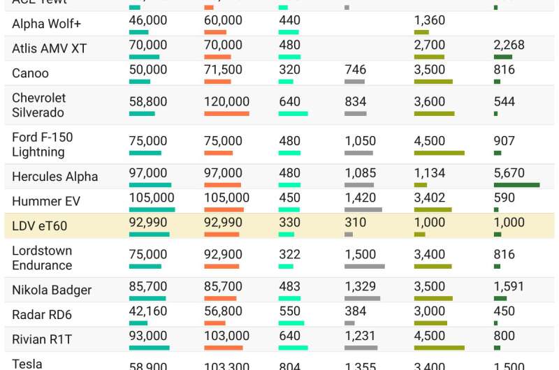 Australia's first electric ute is the LDV eT60. It's hugely expensive at around A$93,000, almost twice the cost of its diesel counterpart.