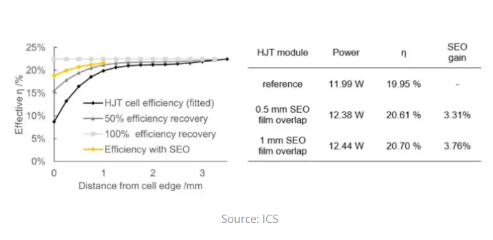 "These new results demonstrate that overlapping the edges of heterojunction solar cells with SEO film has the potential to be game changer for high efficiency PV modules," said Dr. Andrea Pfreundt, product manager at ICS.
