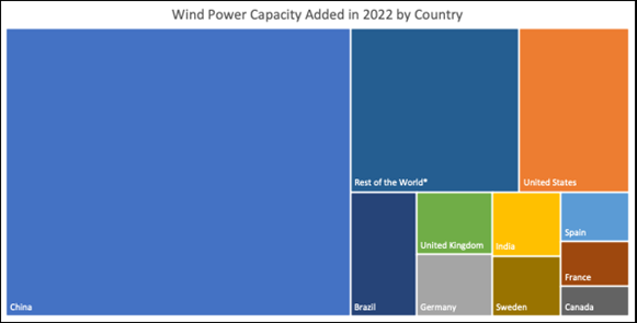 In Asia, China continues to play a role on its own with 49 Gigawatt of new capacity added, substantially less than in 2021 and also below the expectations which experts raised during 2022. However, the country still represents 55% of the market volume for new turbines and 42% of the global wind power capacity. Stronger growth is expected in 2023.