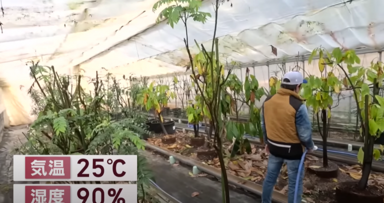 Using hot spring water at 65 to 70 degrees Celsius, Ryota Shigeno is able to maintain the temperature and humidity necessary to grow bananas in a greenhouse. In the same farm, Shigeno also grows curry leaves native to India and cacao typically native in tropical regions. In another greenhouse, geothermal heat is used to grow dragon fruit that is typically grown in Central and South America.
