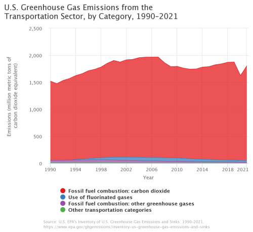 GHG emissions by economic sector. Transportation represented 28.5% of US greenhouse gas emissions in 2021. Source: EPA.