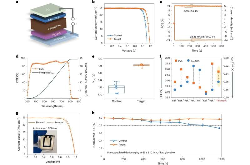 Their experiments showed that the defect density of perovskite films can be significantly reduced after introducing GBAC. The power conversion efficiency of inverted (p-i-n) perovskite solar cells based on the modified perovskites was boosted to 24.8% (24.5% certified by the Japan Electrical Safety & Environment Technology Laboratories), which is among the highest values reported in the literature.