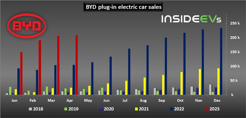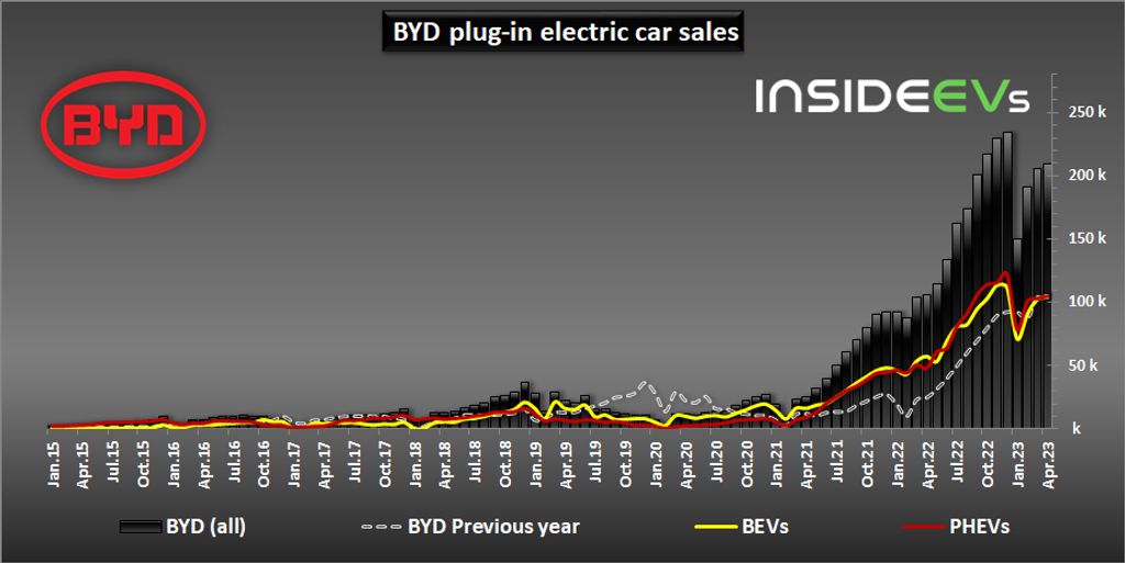 That's one of the best results so far (only October-December 2022 was better), and a clear sign that BYD is on a path for new all-time records (currently it's 234,598 units in December 2022).