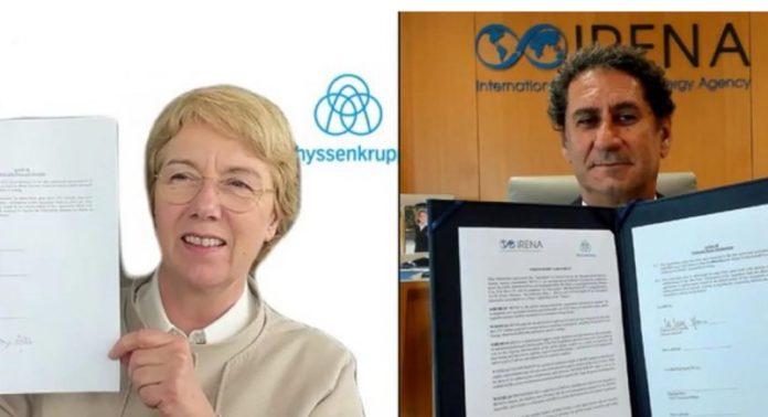 The agreement has been signed by director-general of IRENA Francesco La Camera and thyssenkrupp CEO Martina Merz in a virtual ceremony.