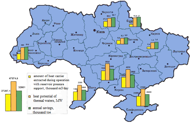 Prospective regions for the use of geothermal resources in Ukraine (source: “Atlas of energy potential of renewable energy in Ukraine