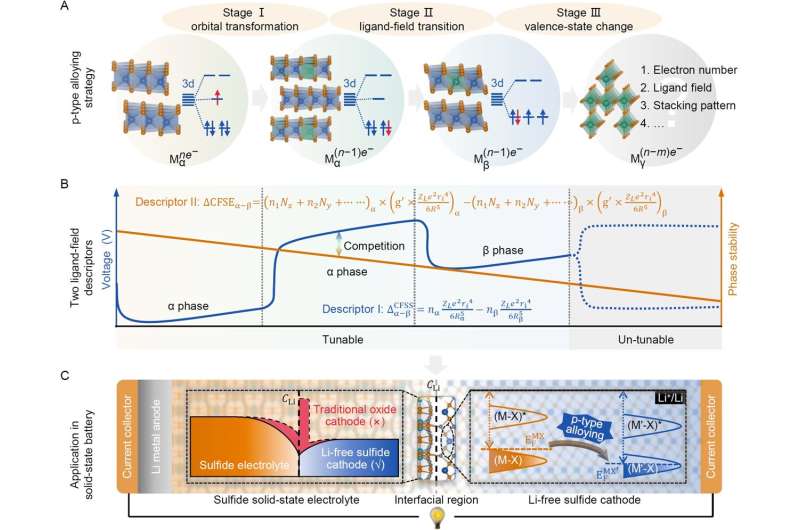Recently, Prof. Siqi Shi from Shanghai University identified a crucial voltage-tuning/phase-stability competition that has been ever overlooked in the cathode systems. The, they proposed a p-type alloying strategy involving three voltage/phase evolution stages, of each which their varying trends were quantitated by two improved ligand-field descriptors to balance the above contradiction.
