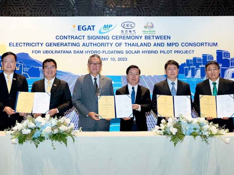 The EGAT (Electricity Generating Authority of Thailand) – MPD Consortium has signed a construction contract for a hybrid hydro-floating solar project at Ubol Ratana Dam in Khon Kaen Province, Thailand.
