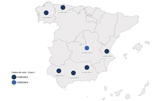Managed by the Institute for Energy Diversification and Saving (IDAE), a body dependent on MITECO, the program has awarded aid for amounts of 10 and 15 million to seven projects in five autonomous communities: Andalusia (3), Valencian Community , Asturias, Galicia and Castilla-La Mancha. A total of 60 million have corresponded to initiatives in Just Transition and Demographic Challenge areas, such as the surroundings of the old thermal power plants of Carboneras (Almería), Meirama (A Coruña), or the Aboño thermoelectric complex (Asturias), among others.