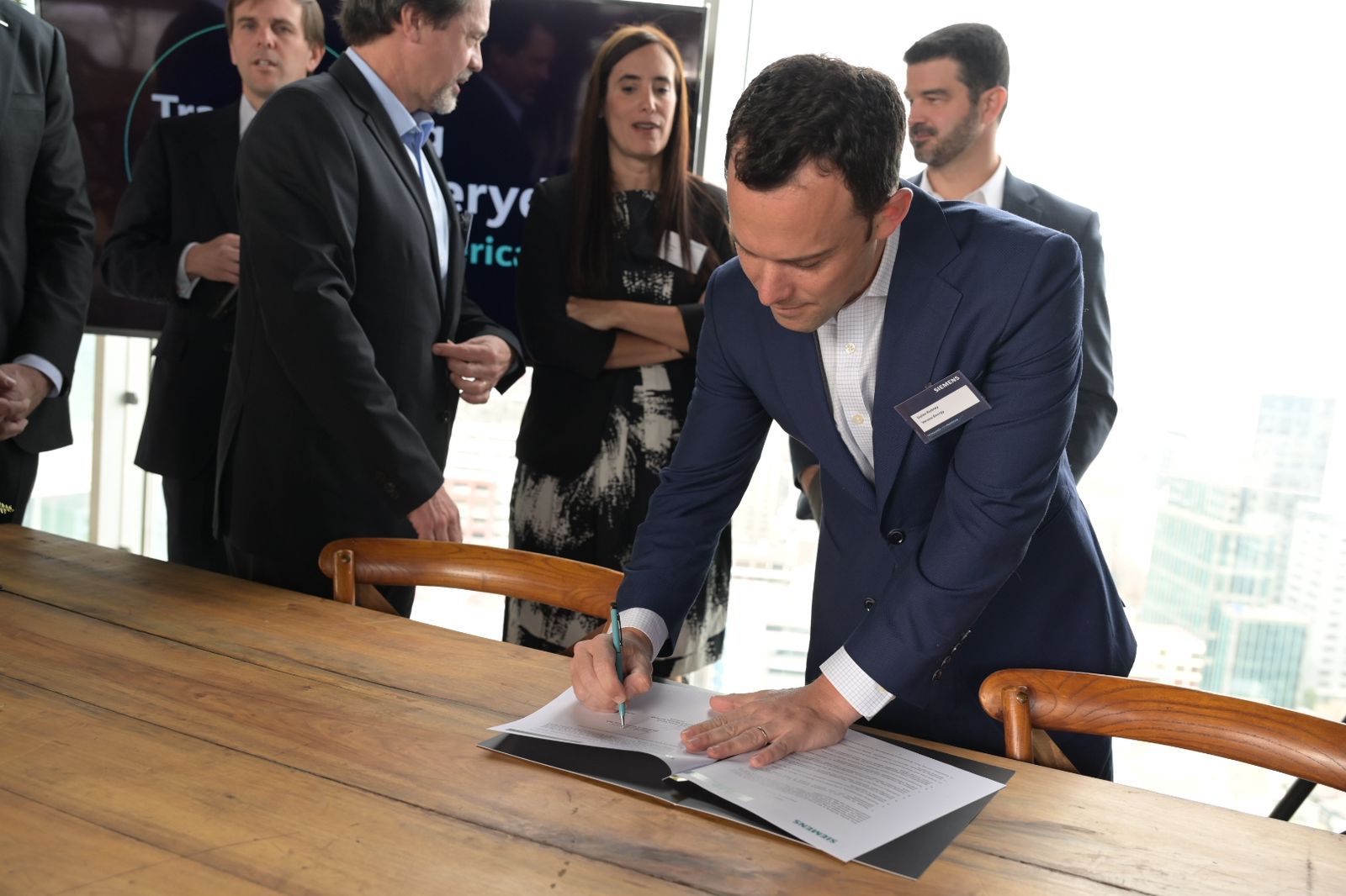 The seminar was followed by the signing of the agreement between Siemens and Verano Energy, company that was represented by its CEO Dylan Rudney, COO Collin Hamilton, CFO Juan Wegner, and Country Manager Chile, Carolina Galleguillos.