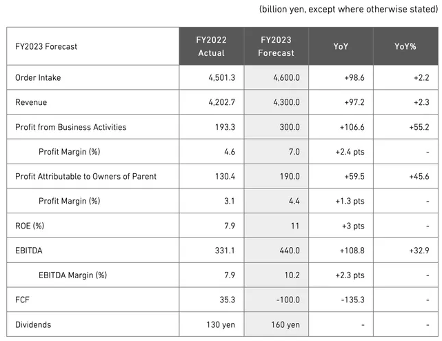 In Logistics, Thermal & Drive Systems, successful passthrough of cost inflation to sales prices mainly in Logistics Systems and Heating, Ventilation & Air Conditioning (HVAC) led to 14.3% and 16.6% YoY increases in order intake and revenue, respectively. Cost passthroughs in these businesses also helped to raise the segment's business profit by YEN15.3 billion YoY.