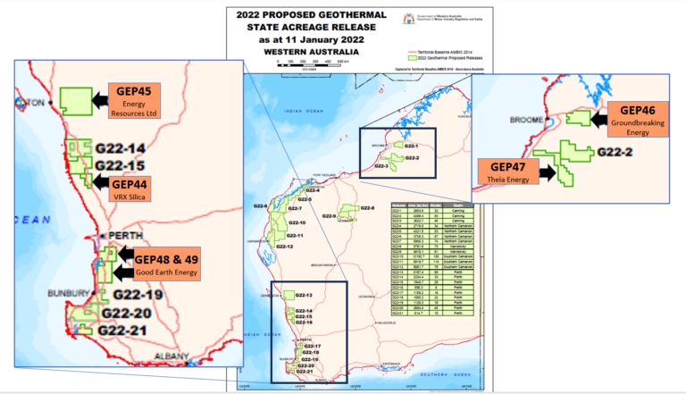 Awarded geothermal exploration permits in Western Australia as of 27 July 2023 (source: Australian Geothermal Association)