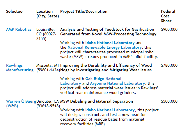 Partnering laboratory researchers will collaborate with award recipients to understand, quantify, and mitigate the risk impact of feedstock variability across the bioenergy and bioproduct value chains. The following projects were selected: