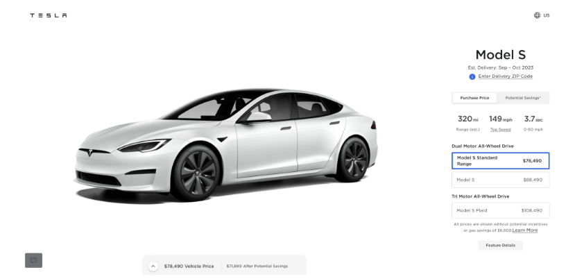 For the Model S, it drops the price by $10,000 to $78,490, but you also lose 85 miles since the new Standard Range is 320 miles on a single charge compared to 405 miles for the Long Range version.