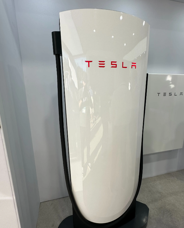 New V4 supercharger seen at IAA Munich, with longer cable wrapped around the station