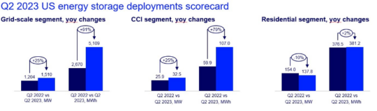 Community, commercial, and industrial (CCI) installations, at 107 MWh, were higher than any quarter in 2022 but could not keep pace with the huge spike in Q1 installations, resulting in a 53% quarterly decline. However, the segment is still up 25% year-over-year.