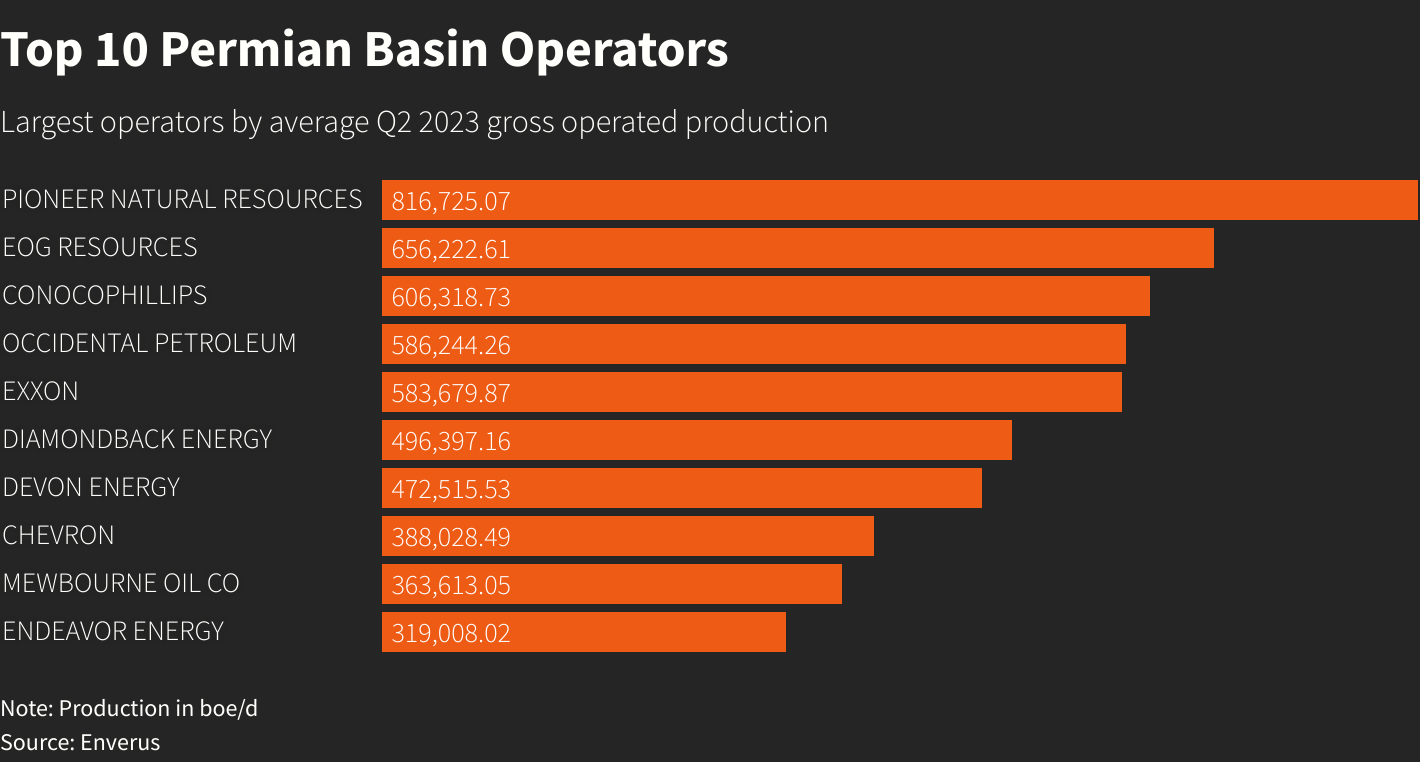 "Pioneer is the Permian's largest operator at 9% of gross production while Exxon is No. 5 at 6%. Combined amounts to 15% of operated Permian production, but only 6% of total U.S. production. These datapoints are relevant given FTC scrutiny around consolidation," RBC Capital Markets analyst Scott Hanold said in a note.