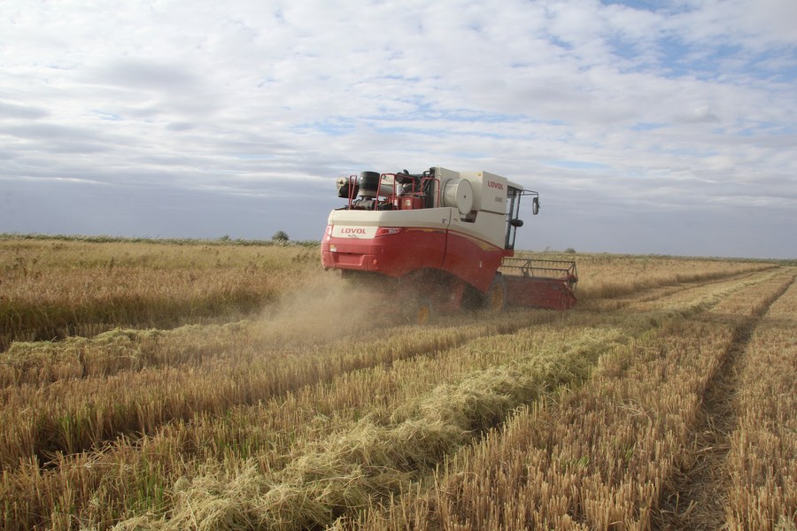 A Chinese-made combine harvester is used by Kazakh farmers during harvest season in Kazakhstan, September 16, 2020. /Kazakhstan National Agrarian Science Educational Center