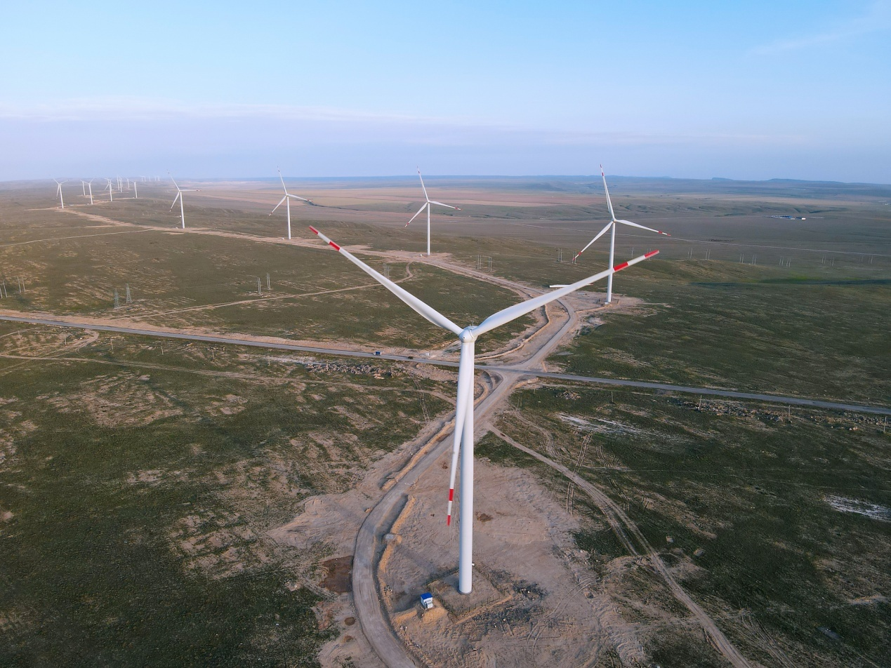 The 100-megawatt Zhanatas wind power plant, Central Asia's largest wind farm, is built by a Chinese firm in the Zhambyl Region of Kazakhstan. /Chinese Ministry of Commerce