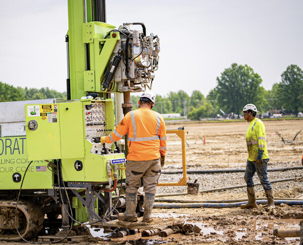 On World Geothermal Energy Day, Subterra Renewables celebrates Ohio’s Oberlin College in its drive to Net Zero by 2025 as the campus converts its century-old heating system to a geothermal energy exchange system. Workers on site are using state-of-the-art sonic drilling rigs to bore 850 well holes, 600-feet underground to install the thermal pipes. (CNW Group/Subterra Renewables)