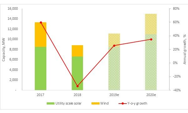 Most of the wind projects allocated in 2018 and scheduled in 2019 were delayed primarily from land-related issues and lack of grid transmission availability, but are likely to be commissioned in 2020.