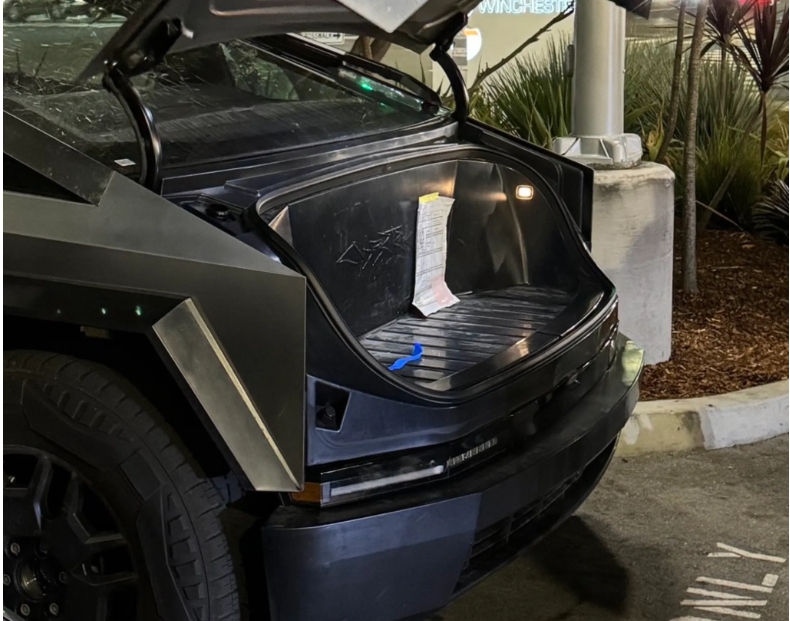 We can also see that the Cybertruck logo in a cyberpunk-like font that Tesla trademarked early in the Cybertruck program is going to be front and center in the frunk.