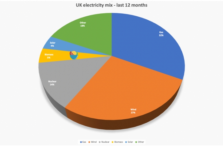 Biomass made up five per cent of the electricity mix over the past 12 months (Source: grid.iamkate.com)