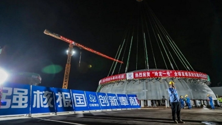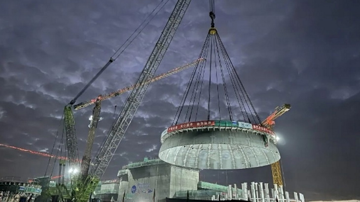 "The key structures are capped and the peak period of internal installation has begun," CNNC said. "This hoisting completed the final step of forming the steel containment vessel as a whole, providing a more complete and reliable protective barrier for the reactor core modules, internal components, voltage regulators and other important equipment that had been introduced in advance."