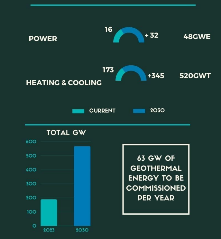 Taking both into consideration, the geothermal sector has its own “triple up” goals of 48 GWe of capacity for the power sector and 520 GWt of capacity for the heating and cooling sector, as wonderfully summarized by the IGA.