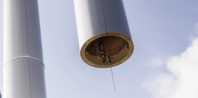 The wood is strong but lighter than steel, and Modvion says one of its main selling points is that the modular tower is easier to transport on standard roads.