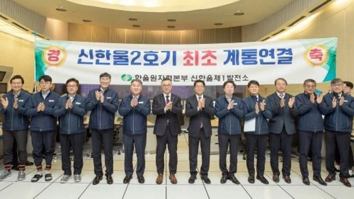 Workers celebrate the grid connection of Shin Hanul 2 (Image: KHNP)