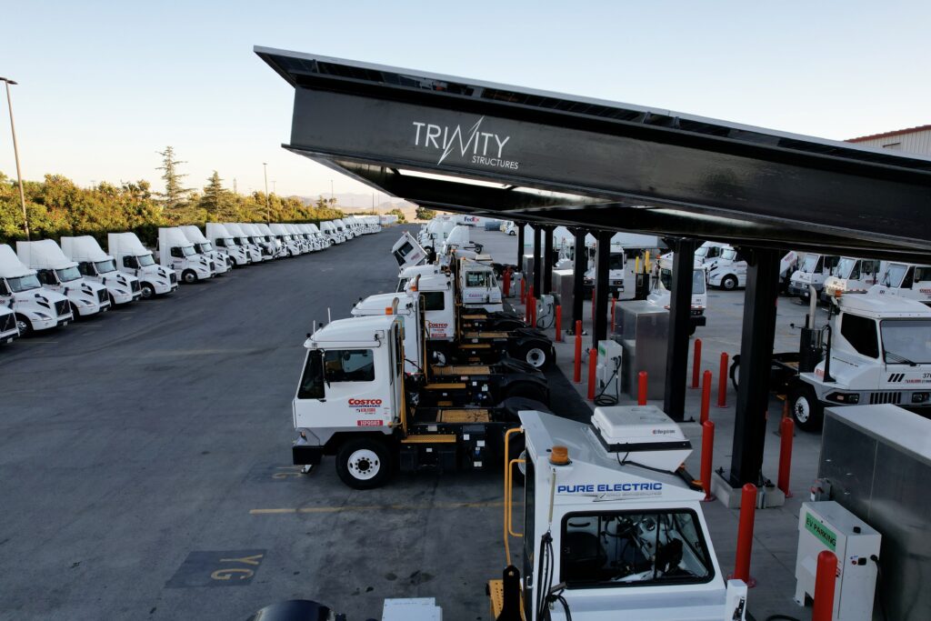 (Credit: Trinity Structures)Trinity Structures, a Costco electrification partner, announced the successful deployment of its off-grid electrified solar structures for Costco’s electric vehicle (EV) fleet at its largest distribution center in Mira Loma, CA.